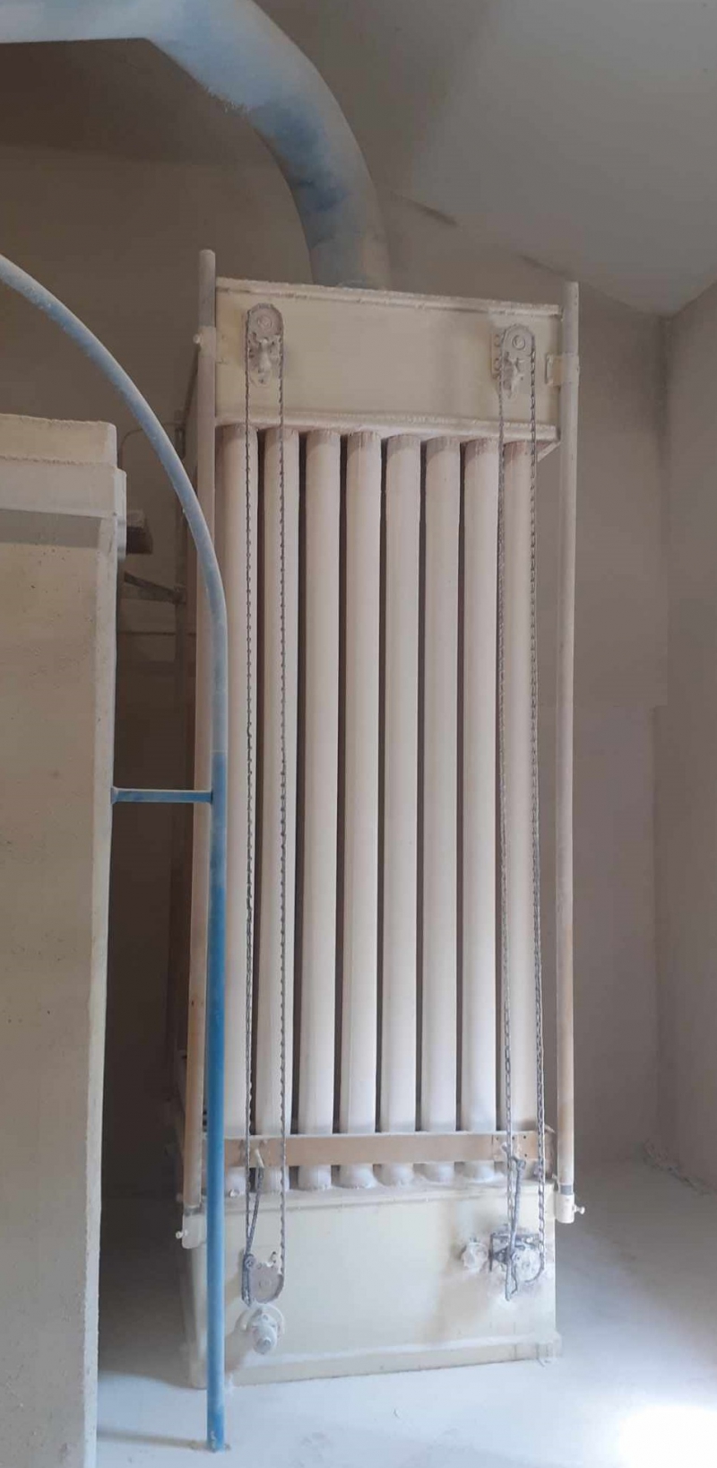 In offer we have one second hand filter, 80 sleeves, height 235 cm × fi10 cm. External dimensions: 1,5×1,25×3,30+supply pipe. An el. motor in addition.