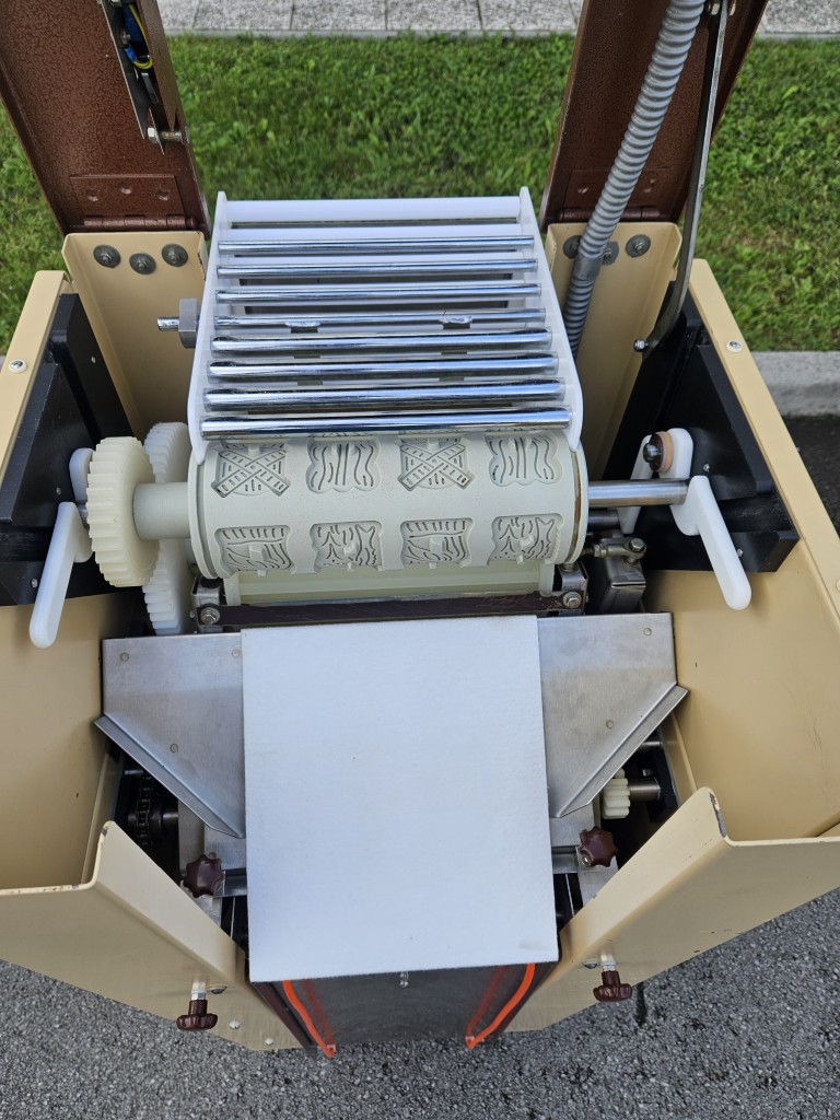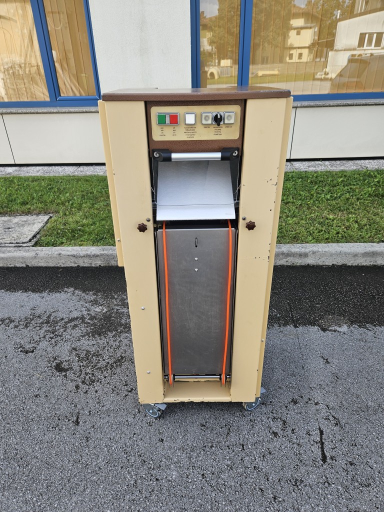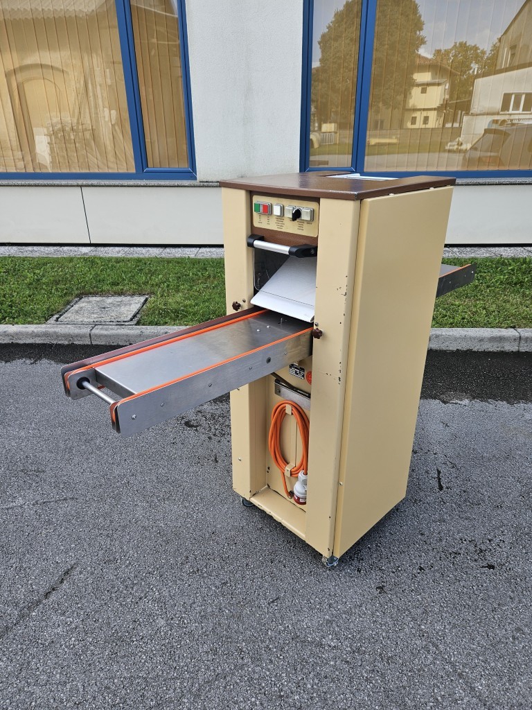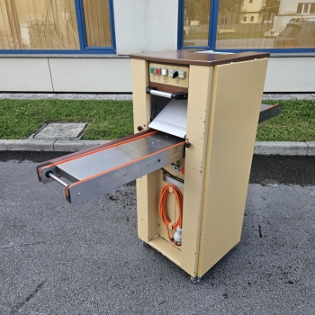 In offer we have a second-hand rotary biscuit machine (hard biscuit machine) brand KALMEIJER model KGM including one mold. Capacity between 2 and 5 kg dough/min – depending on the biscuit's mold. The replacement of the molds and the cleaning of the machine are really easy and quick. The machine's casings have been repainted, it has new chains, a new conveyor belt, new knife, new rollers and plastics on the input basket, new handles for fixing the rollers, a new fan with heaters, and new wheels. The machine has been practically completely renovated.