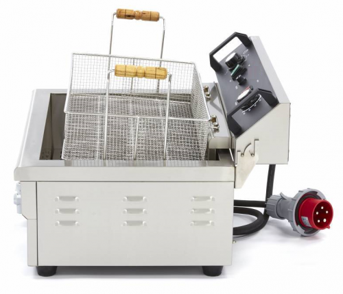 Nudimo Vama novu električnu fritezo za krafne sa ocijeđivačem. Pravljena je od nehrđajućeg čelika. Friteza je kompaktna te jednostavna za čišćenje. Stoji na 4 gumenim noga. Ima poklopac i ispusni ventil za ulje.