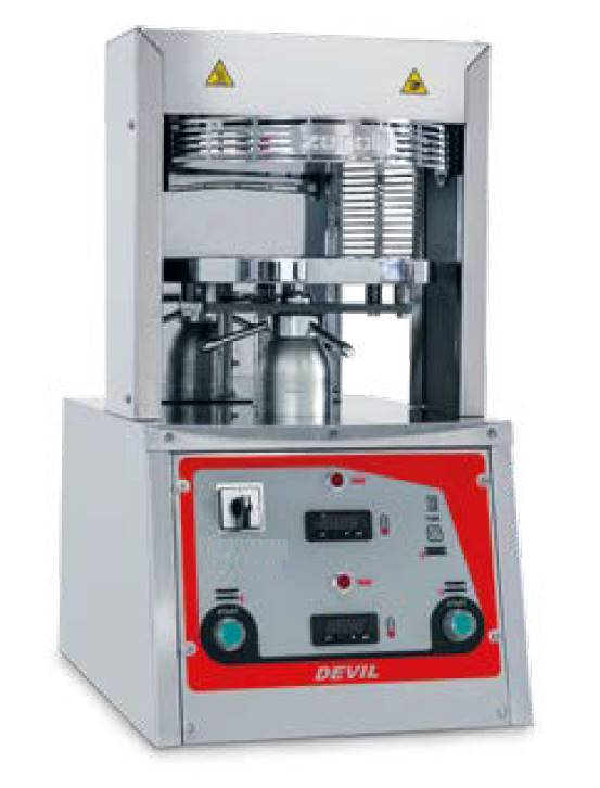 Nudimo Vama novi stroj za formiranje pizze – presa model Devil. Ploće su sagrijane. Za promjer pizze 33 cm ili 45 cm.