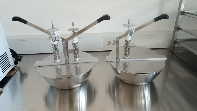 V ponudbi imamo nove ročne dozatorje za kreme in marmelade za krofe, za rogljiče, posoda kapacitete 5 litrov, brizg do 0 do 10 g, z eno iglo. Dozator je izdelan iz nerjavečega jekla (potisni valj je izdelan iz plastične mase). Deli se hitro in enostavno razstavijo za lažje čiščenje.