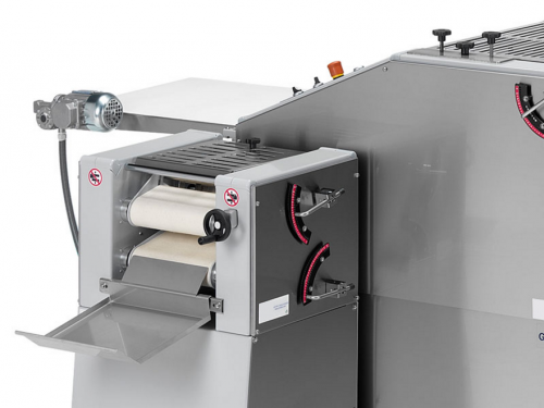 V ponudbi imamo linijo za proizvodnjo rogljičev model GC200 - I, v celoti izdelana iz nerjavečega jekla. Linija je zasnovana tako, da v le nekaj kvadratnih metrih združuje tehnologijo velikih linij za proizvodnjo rogljičev. Testo zavito na valjar se postavi na vhodni trak, kjer dva bočna diska odrežeta odvečni del s stani ter ostanek odvržeta v zaboj. Testo nato preide v kalibrator (valjar) z namenom, da zagotovi enovito debelino testa, tudi v neprekinjenem načinu dela, ko se listi testa med seboj spajajo. Trikotniki se režejo s pomočjo dveh valjev, ki preprečujeta, da bi se testo prijemalo nanje. Trikotniki se oddvojijo med seboj nato pa jih linija avtomatsko postavi na stroj za zavijanje, ki rogljičke zavije kot bi bili ročno izdelani.