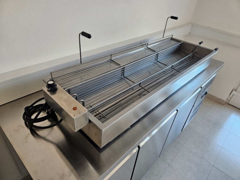 Nudimo vam nov namizni električni cvrtnik za krofe v celoti izdelan iz nerjavečega jekla. V kompletu ima dve košari, ki služita tudi kot obračalnika za krofe. Friteza ima odtočno pipo za izpust olja in odstranljiv grelec za lažje čiščenje in vzdrževanje.